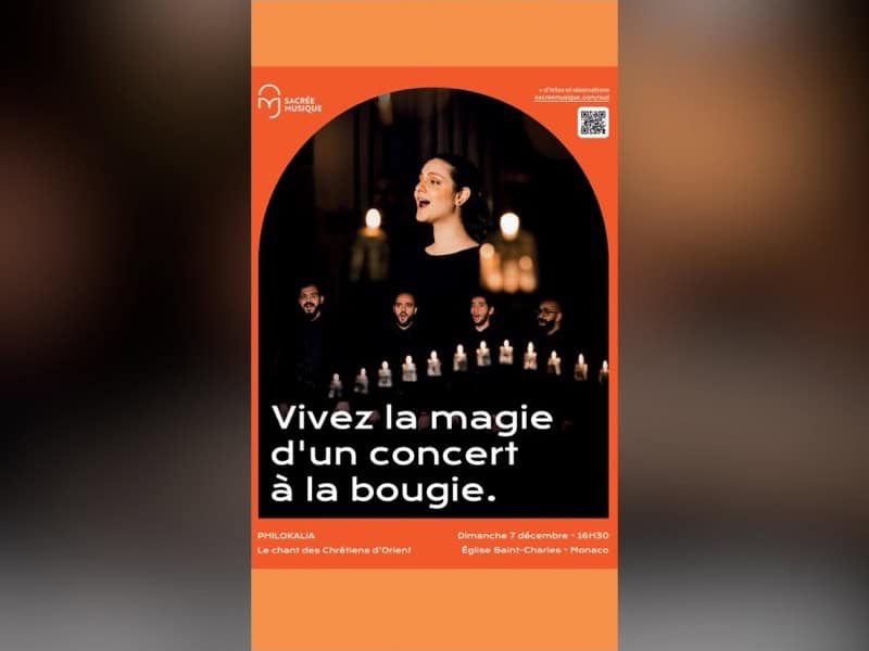 Le chœur maronite Philokalia, venu spécialement du Liban, donnera un concert à la bougie à l’église Saint-Charles le dimanche 7 décembre 2025, de 16 h 30 à 17 h 30. L’ensemble présentera un programme consacré à la paix, reliant musique arabe et musique classique pour évoquer la disparition des Chrétiens d’Orient, présents au Moyen-Orient depuis deux millénaires.