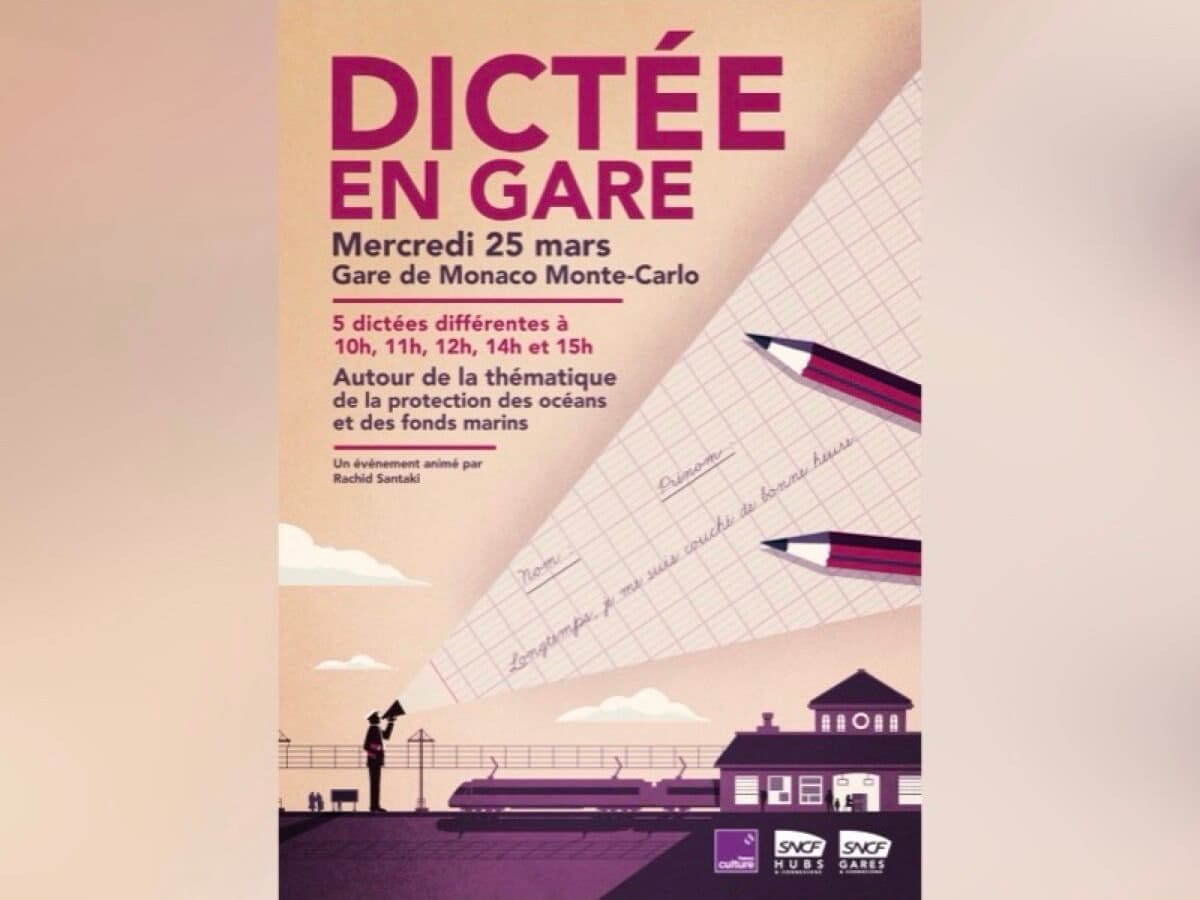 La gare de Monaco Monte-Carlo ouvrira le bal du tour de France de la Dictée En Gare 2026, mercredi 25 mars. Organisé par France Culture et SNCF Gares & Connexions, avec la participation de Hubs & Connexions et le soutien du Gouvernement Princier, l’événement se déroulera dans l’Espace d’exposition de la gare, transformé pour l’occasion en salle de classe éphémère.